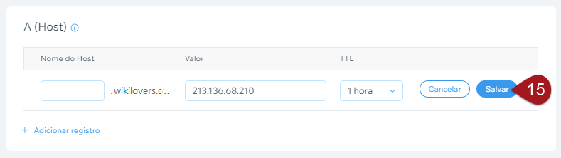 Valor: neste campo, inclua o seu domínio sem o www. No exemplo, ficou somente wikilovers.com.br .