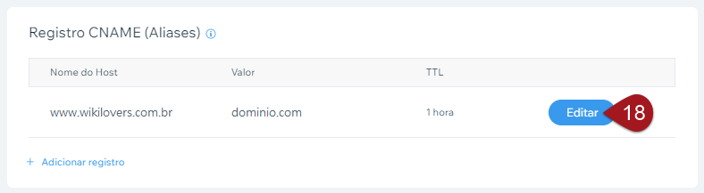 Geralmente, essa entrada está na categoria Registro CNAME (Aliases), mas pode ser que esteja na A (Host). Então lembre de verificar essas 2 categorias, beleza?