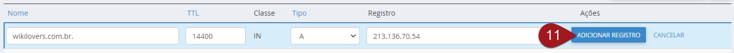 TTL: este campo virá automaticamente como 14400. Caso tenha alguma informação diferente, altere para 14400.