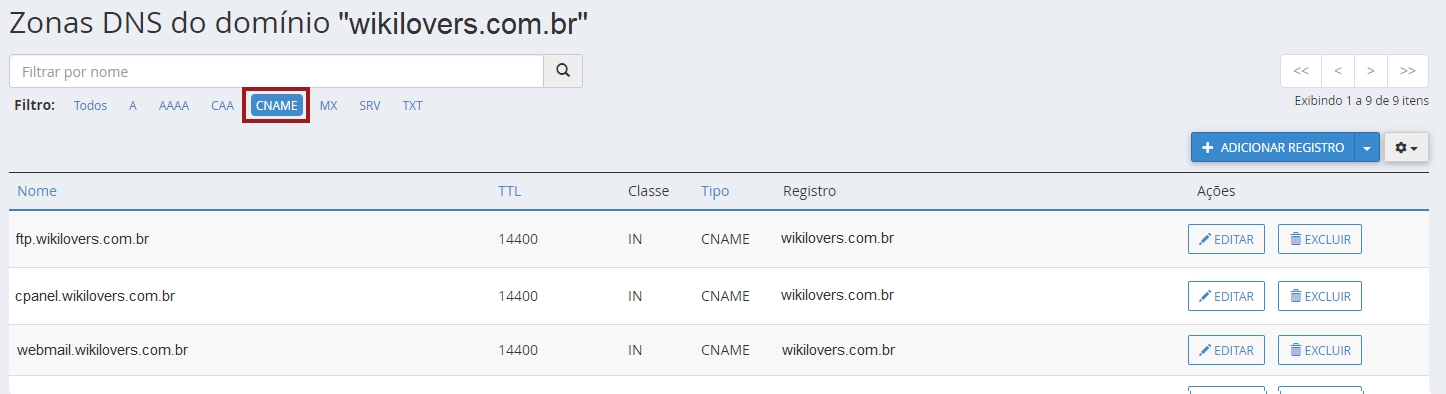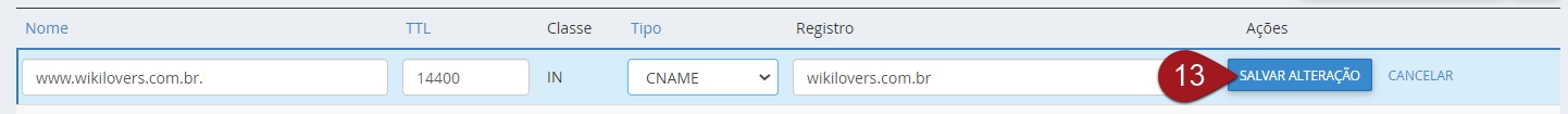 Depois que já salvou as informações, você precisa editar todas essas entradas (CNAMEs apontadas para seu domínio + a do domínio principal).