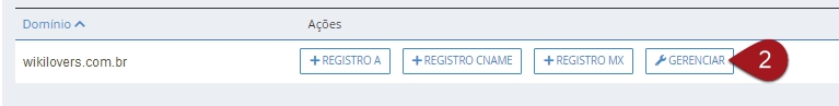 Nº2– Aparecerá uma lista com seus domínios, no domínio o qual deseja utilizar aqui no leadlovers clique em Gerenciar.