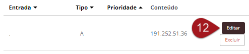 Nº12– Localize novamente a entrada do tipo A (a mesma do passo 04) que tem um ponto final ( . ). Clique em Editar.