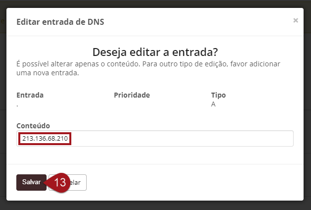 Conteúdo: apague o IP que estava anteriormente e insira o nosso: 167.234.235.22
