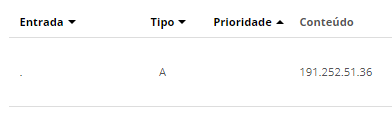 Exemplo: na imagem, a primeira entrada ” . ” é do tipo A e está apontada para o número 191.252.51.36. Então, no caso do exemplo, salvarei este número.
