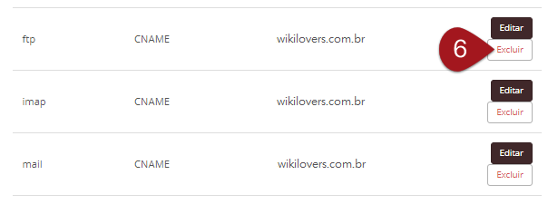 Depois que já salvou as informações, você precisa remover todas essas entradas (CNAMEs apontadas para seu domínio).