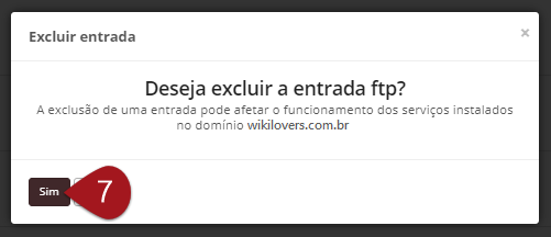 Nº7– Abrirá um pop-up confirmando se deseja remover o registro, clique novamente em Sim.