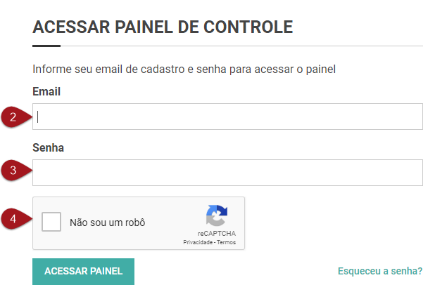 4 – Marque a opção “Não sou um robô” e Clique em Acessar Painel para acessar.