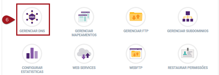 5 – Clique no quadro Gerenciar Domínios, localizado na lateral direita do painel.
