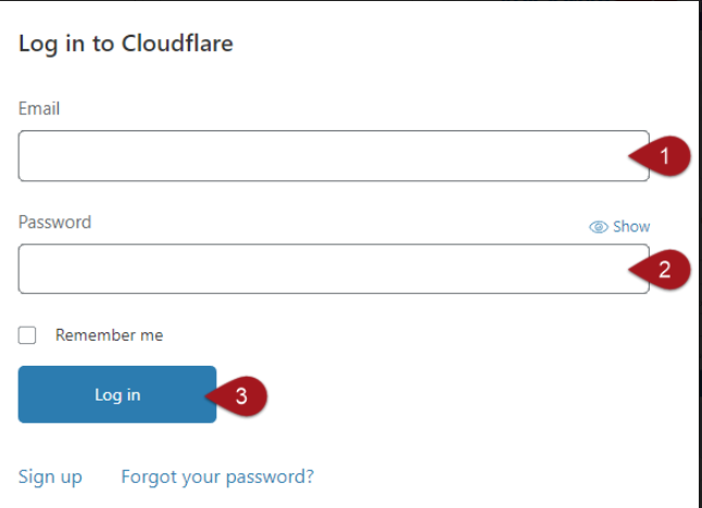 Acesse o site de login do Cloudflare, e localize o quadro onde você deve inserir as opções de login e senha.
