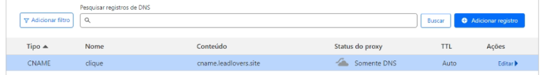 OBS: Na criação das entradas, em Status do Proxy adicionar a opção Somente DNS.