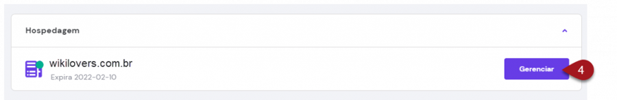 Quando já estiver na tela de Hospedagens, clique em GERENCIAR