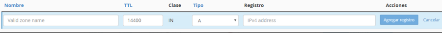 Acima da lista de registros existentes, você tem os campos para criação de novos registros. Vamos usá-los para a criar a entrada de subdomínio.