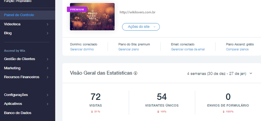 Após incluir o login e senha, aparecerá a tela principal do WIX.