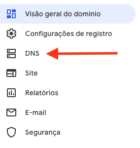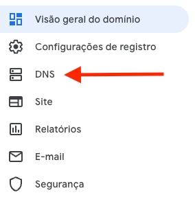 Acesse o seu painel do Google Domains e clique em DNS.