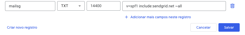 – Se já existir, não crie um novo registro, apenas adicione o valor ao registro atual: include:spf-ll.xmailer.com.br