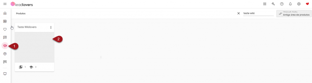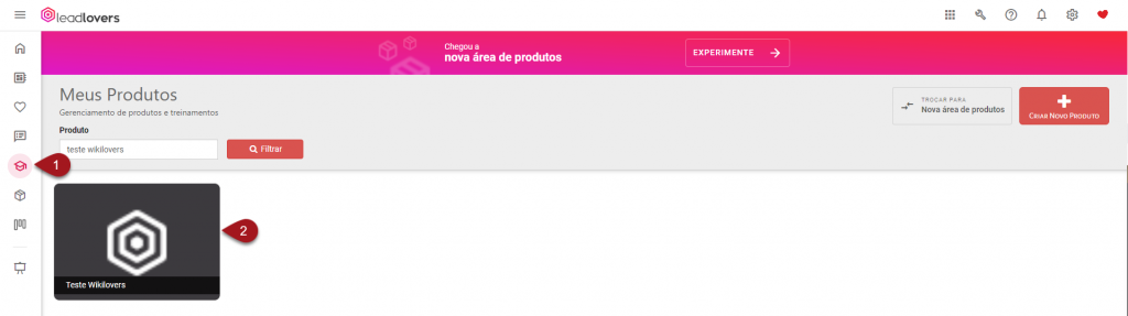 1 – Acesse o ícone de Produto Ead no menu lateral esquerdo de sua conta.