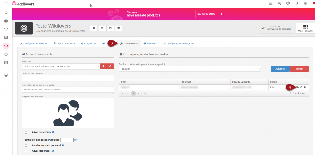 4 – Escolha o treinamento que possui a aula que deseja inserir o vídeo e clique no ícone de pastinha, para acessar as aulas.