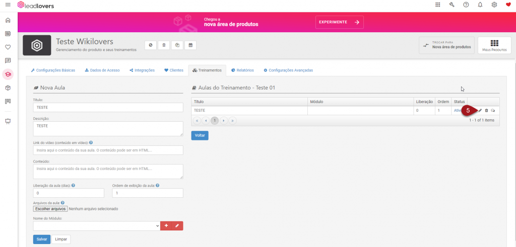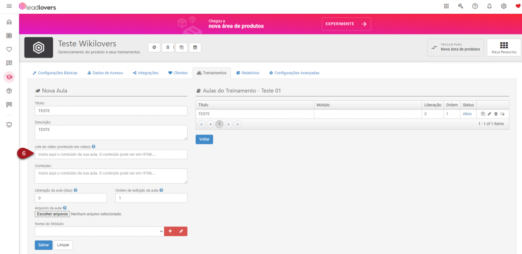 Inserir vídeo em aula de um Produto Ead (versão 3.0)
