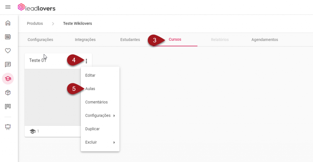 5 – Selecione a opção Aulas.
