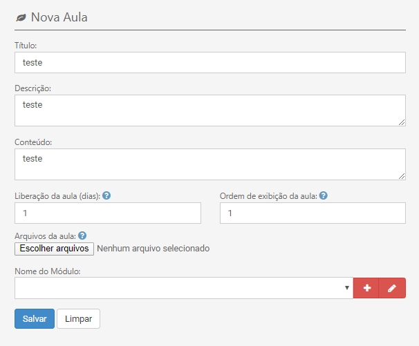 Nesse mesmo local você pode editar Titulo, conteúdo, arquivo das aulas, módulos.