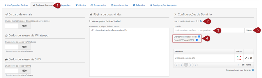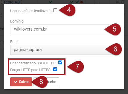 Nº3– Insira aqui o seu domínio e deixe a opção “Usar domínio leadlovers” desmarcada.
