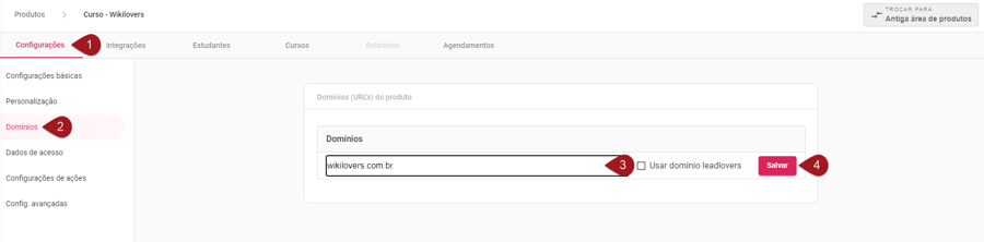 – No entanto, é possível cadastrar o mesmo domínio em mais de um Produto EAD (se quiser que os alunos tenham acesso a vários cursos que tem na sua conta pelo mesmo endereço, por exemplo).