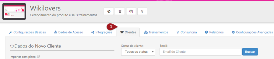 Nº 3 – Dentro do produto acesse a aba Clientes.