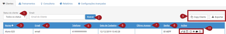 Nº 9 – Nessa opção é possível copiar clientes de um produto para outro ou exportar a lista de clientes.