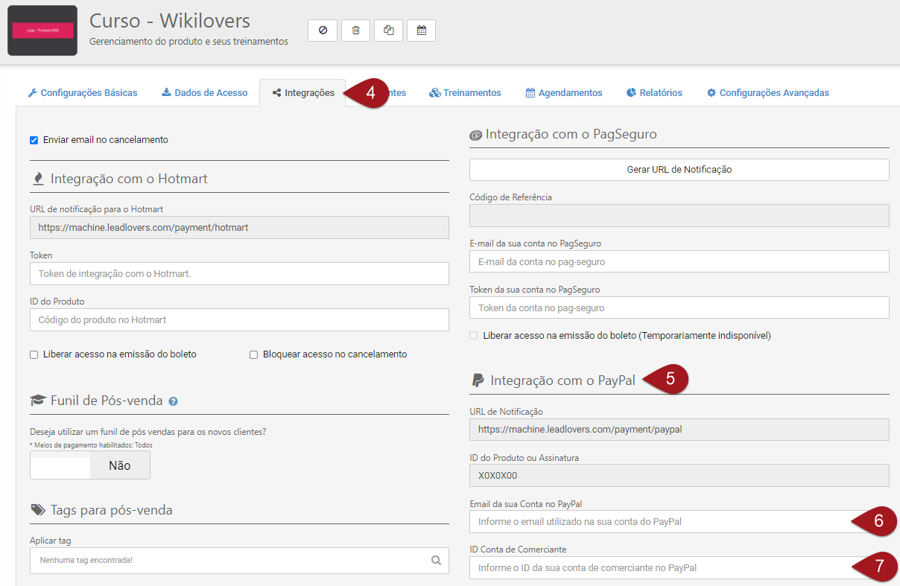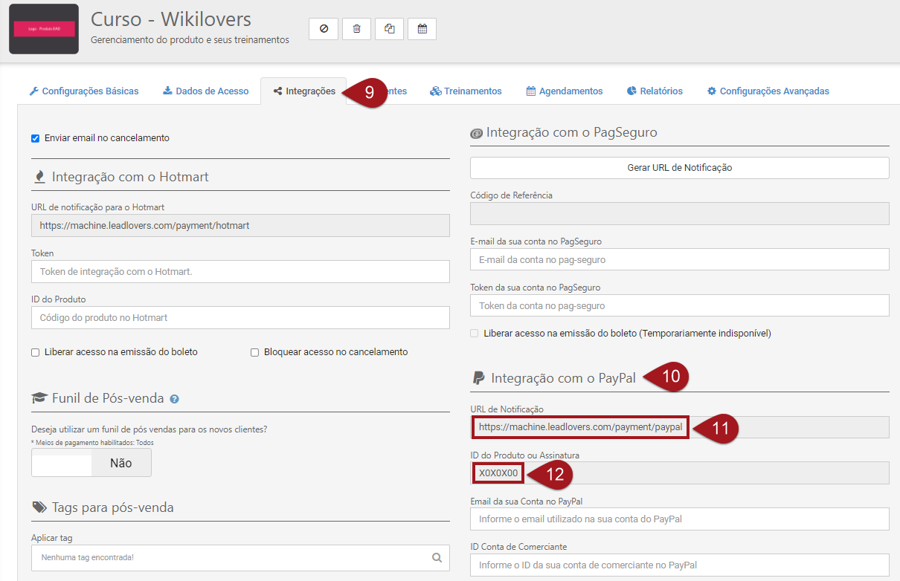 Nº9– Ainda em seu produto leadlovers, após salvar as configurações volte para a aba “Integrações”.