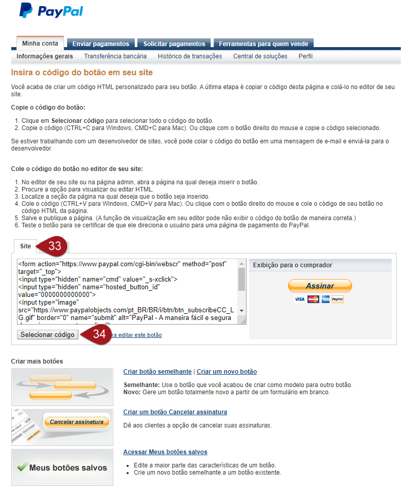 Copiando o código HTML do botão