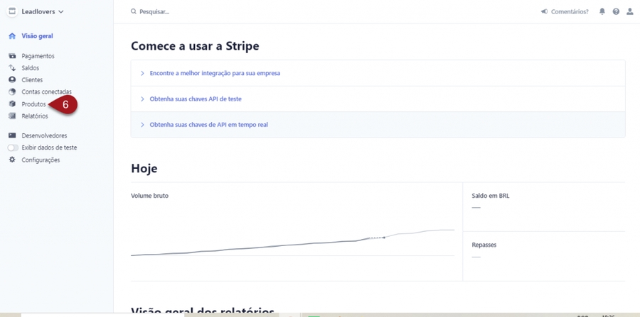 Nº6– No menu lateral esquerdo, clique em Produtos.