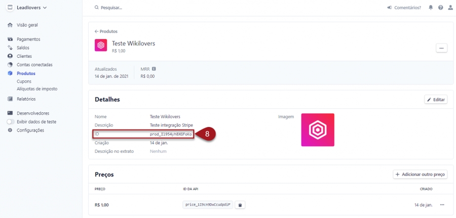 Retorne na aba Integrações, dentro do seu produto e localize o quadro Integração com Stripe.