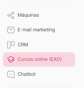 Nº1– Após ter feito login em sua conta leadlovers, acesse a opção Cursos EAD no menu lateral. Nº2– Escolha o produto que deseja realizar a integração.