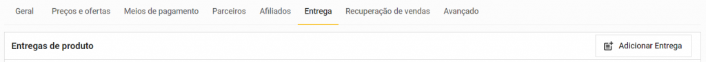 Nº9– Dentro do produto localize a aba Entrega e clique em Adicionar entrega.