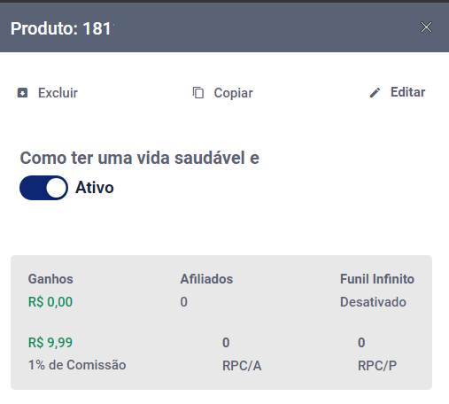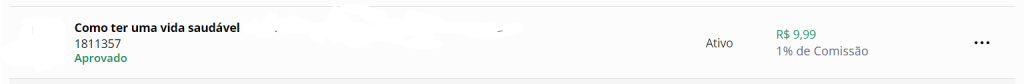 Nº6– Localize o produto que deseja realizar a integração clique nos três pontinhos. Importante: O produto precisa estar aprovado pela Eduzz