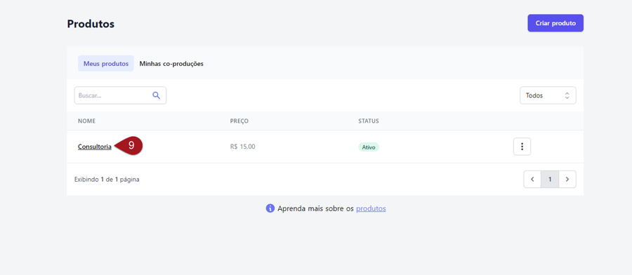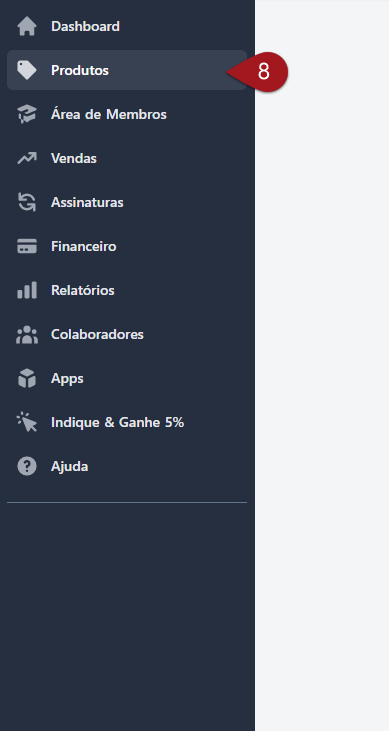 Nº8– No menu na lateral esquerda, vá até a opção **“**Produtos”.
