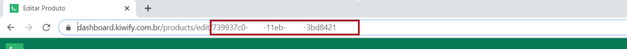 Feito isso você entrará na edição do produto, o ID deste se encontra na barra de endereços do navegador logo após: https://dashboard.kiwify.com.br/products/edit/.