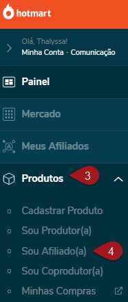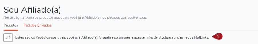 Nº 5 – Na próxima tela aparecerá a listagem de produtos em que você é afiliado.