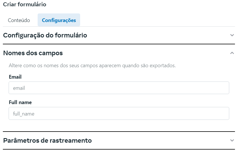 Aqui, queremos alertar sobre a opção Nomes dos Campos. Essa opção não pode ser alterada. As demais, você pode configurar de acordo com a sua necessidade.
