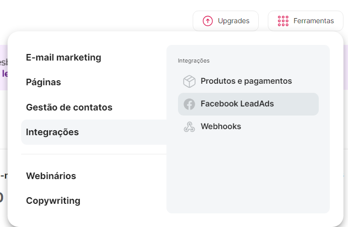 Antes de iniciar estes passos, tenha certeza que a conta de Facebook, responsável pela página profissional na qual você deseja usar a captura, está logada no mesmo navegador que você usa para acessar a leadlovers. Sem isso, não há como prosseguir com a integração.