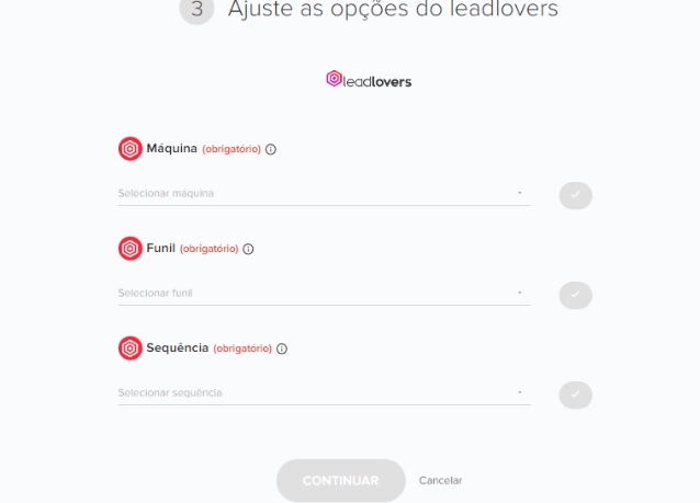Após escolher seu evento, você irá ajustar as opções da leadlovers indicando qual máquina, funil e sequência receberá o lead: