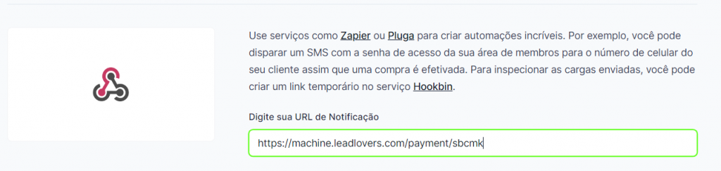 N7º – Na próxima tela, cole essa URL: https://machine.leadlovers.com/payment/sbcmk