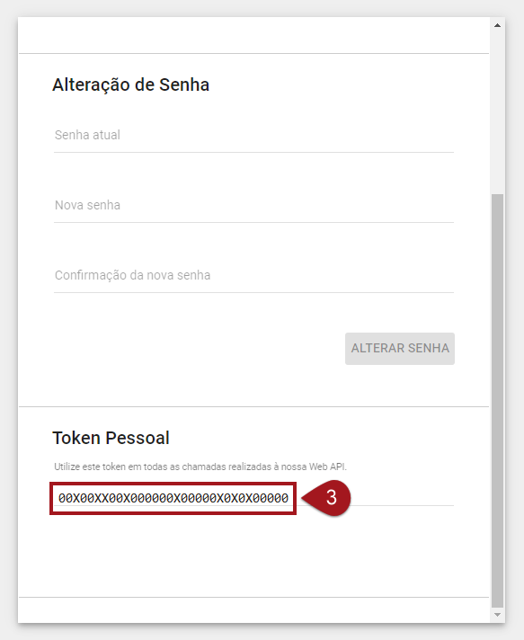 Você será enviado diretamente para a aba “Perfil”. Dentro desta tela, procure o “Token Pessoal” e copie o código. Salve-o em um lugar de fácil acesso, por exemplo o Bloco de Notas.