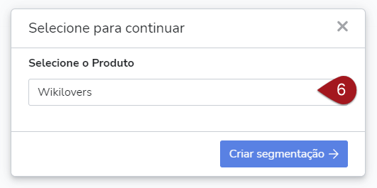 No pop-up que aparecerá, escolha o produto que deseja configurar as integrações e clique em “Criar segmentação”.