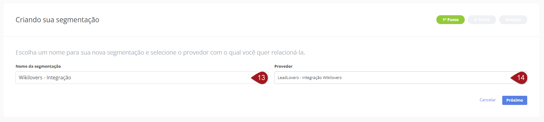 No campo “Provedor” selecione a integração que criou no início deste processo. Verifique os dados e clique em “Próximo”.