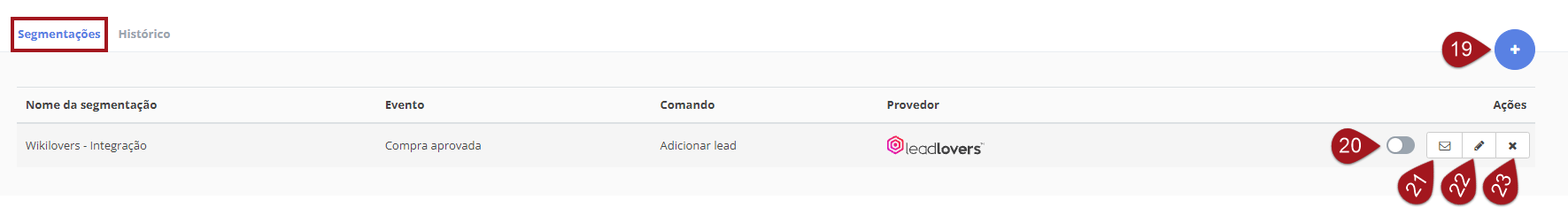 Nº19– Para criar novas segmentações, utilize este botão.