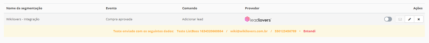 Nº21– Use este botão para enviar um teste desta integração para sua conta da leadlovers.