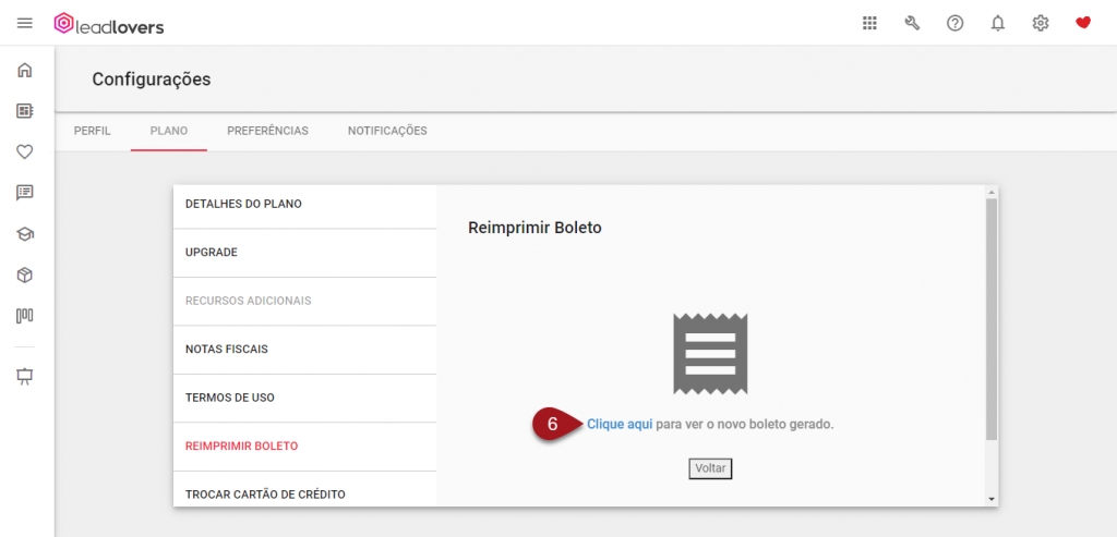 Objetivo: Demonstrar como é possível gerar seu boleto atualizado para pagamento, dentro da plataforma Leadlovers.