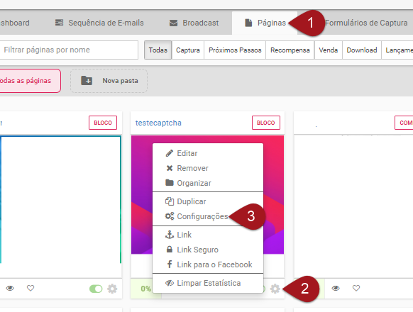 Vamos supor que queira usar essa confirmação somente em 1 página ou em algumas páginas específicas, é possível ativar o Captcha direto nas configurações de cada uma.