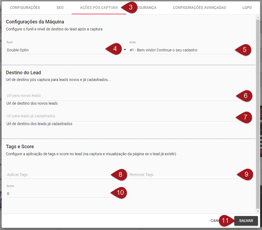 Nº10– Se quiser, ainda é possível definir um score, ou seja, uma pontuação para o contato no momento da captura.